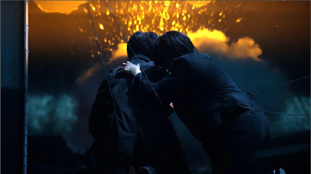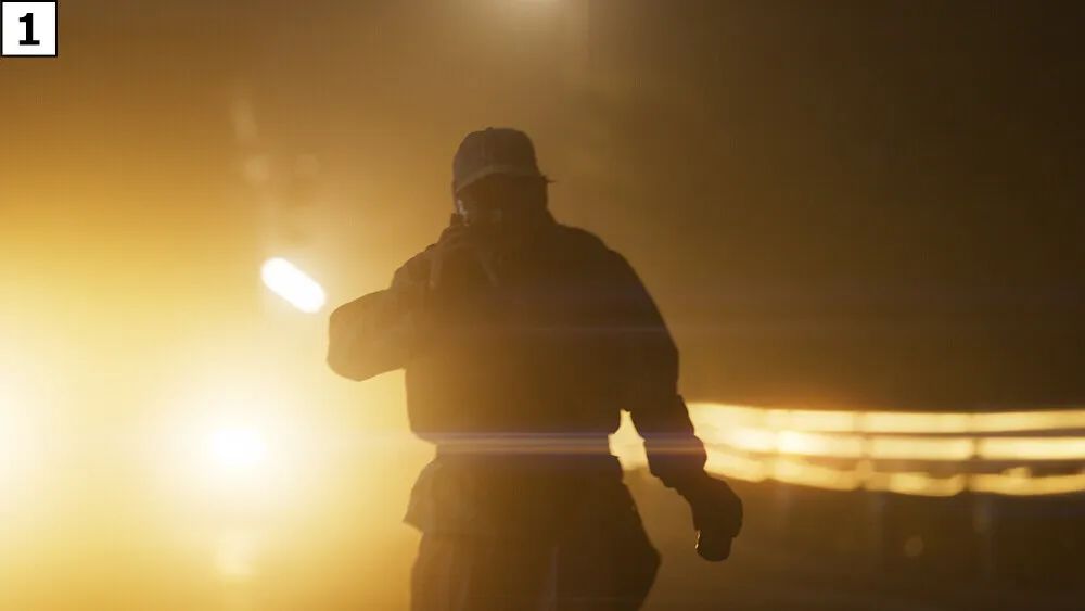 制作方法与地面镜头相同。由于无人机由近及远飞行时,所有的元素都会显现出来,团队为确定前景和背景边界线花费了大量时间,最后通过Roto(抠像)团队,采用大胆又直接的方式完成了最终镜头。
