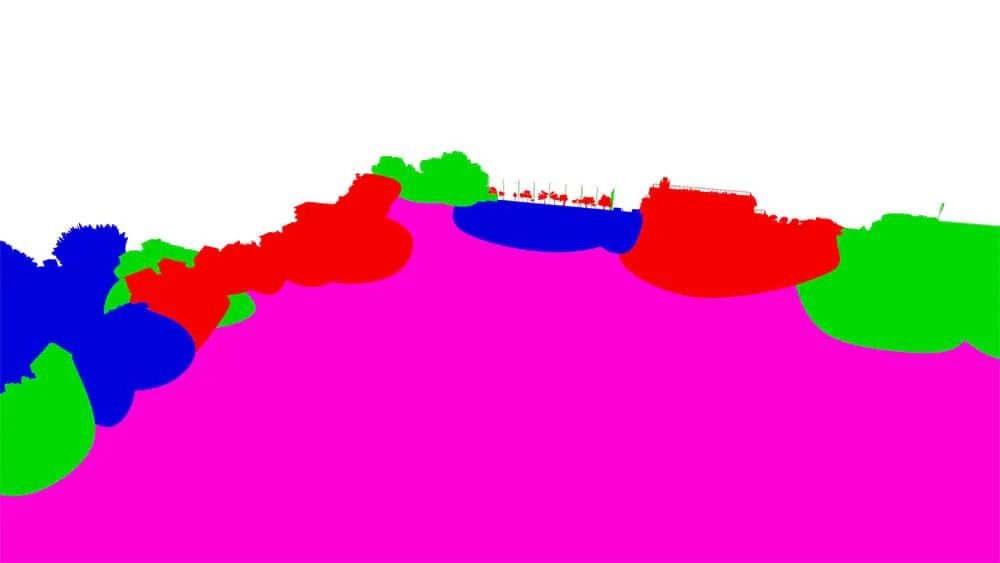 这里出现的船是通过AI生成并替换的。使用Photoshop的“生成填充”功能创建,团队不断尝试直到生成的图像接近预期效果,最后通过剪切和粘贴完成最终制作。