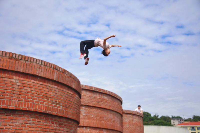 前中国女子体操队队长商春松,如今转型成为中国跑酷队队员。