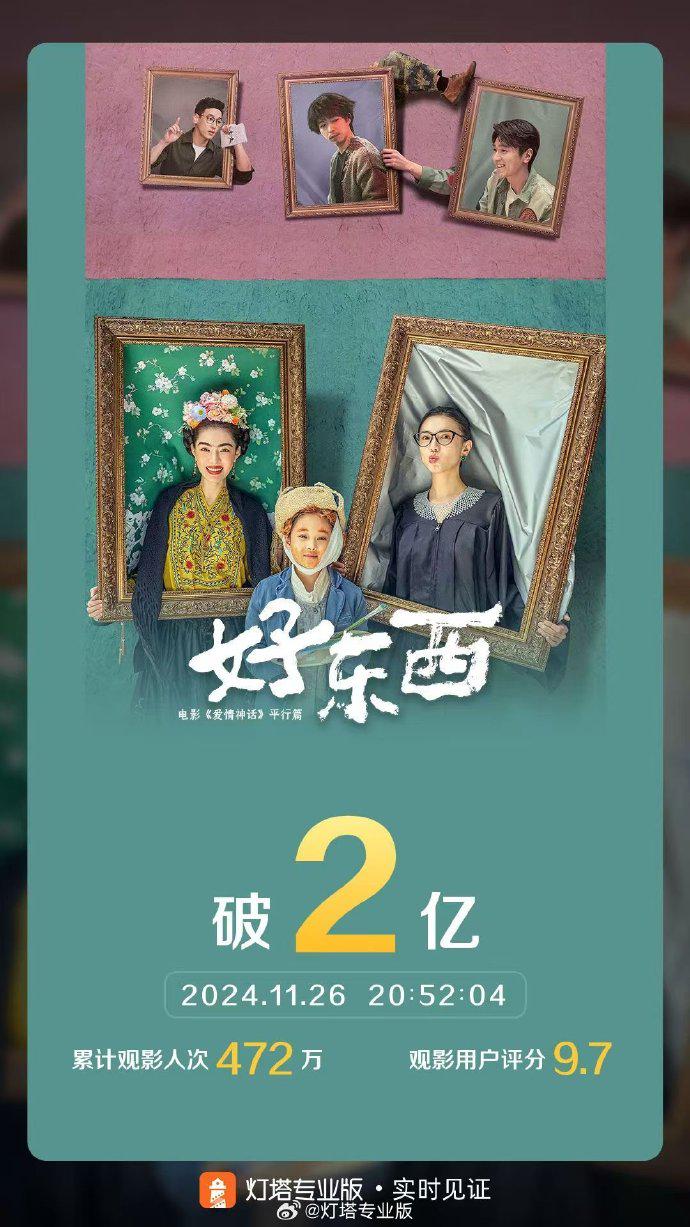 网站首页 影视资讯 动漫 悬疑片 大陆剧 爱情片 喜剧片 科幻片 剧情片 泰国剧 动画片 战争片 网站首页 > 影视资讯 > 电影《好东西》票房破2亿 电影《好东西》票房破2亿 2024-11-26 23:58 据灯塔专业版实时数据,截至11月26日20时52分,影片《好东西》票房突破2亿。 发表 更多评论 最新资讯 查看更多