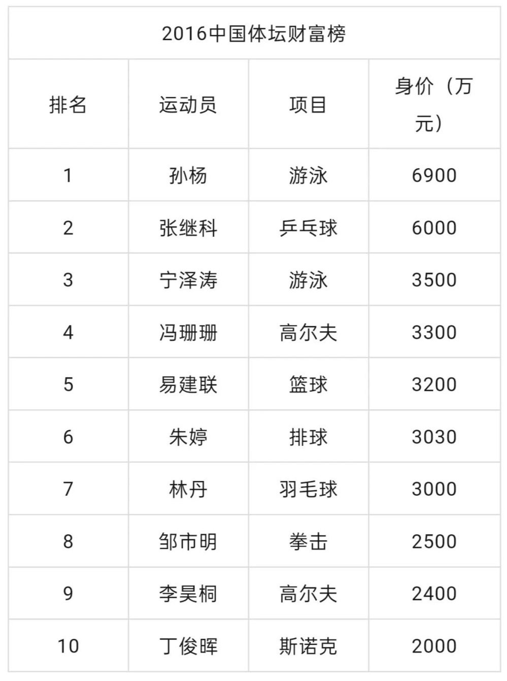 要知道泳队帅哥们受宠可不止今年,早在2016年,《体坛周报》评出中国体坛财富榜,摘下9枚金牌的孙杨位居榜首,但没得过奥运奖牌的宁泽涛也排到了第三,压过了当年的易建联、林丹。
