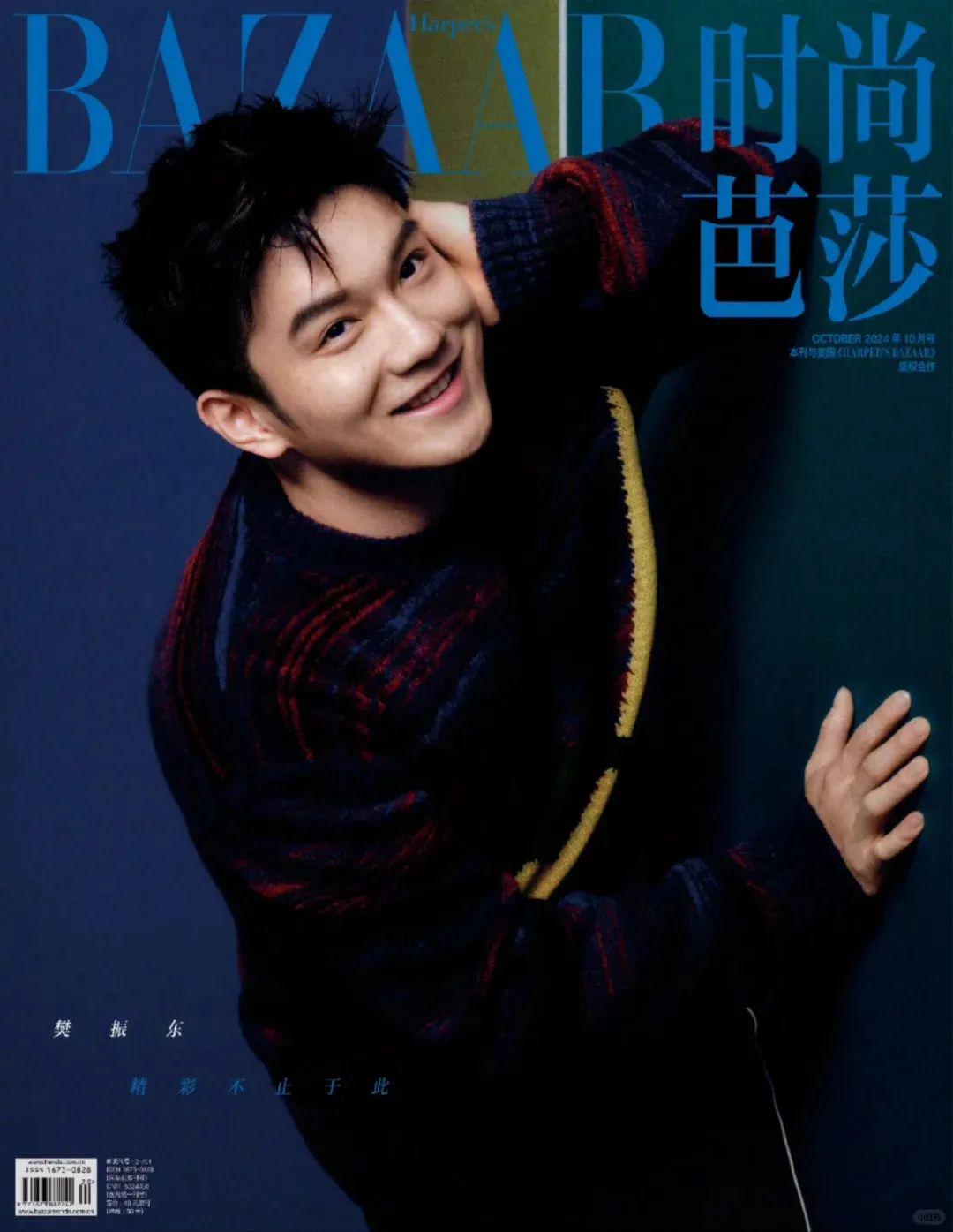 同期十月《时尚芭莎》的下刊封面是巴黎乒乓球男单冠军、超级全满贯得主樊振东,封面中的他身着全套Loewe笑容灿烂。