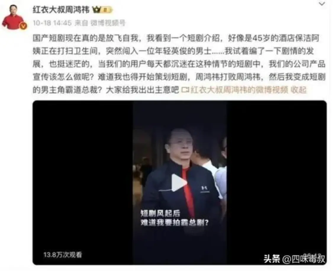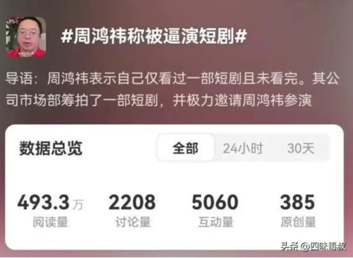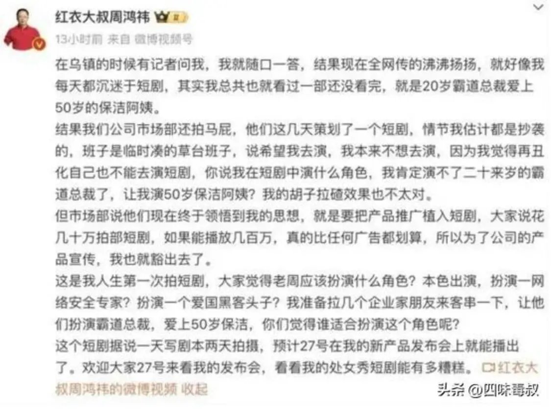 当周鸿祎说自己拍短剧是因为“市场部拍马屁”的时候,我就知道人们的悲喜并不相同。