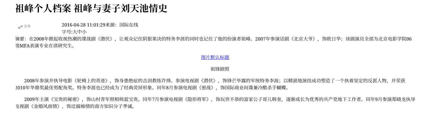 祖峰个人档案 祖峰与妻子刘天池情史-国际在线-2016-04-28