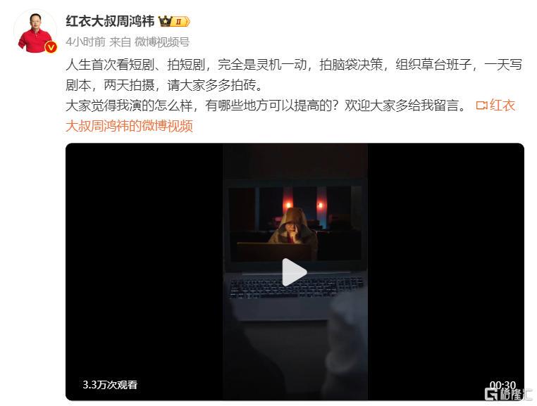 几天前,周鸿祎曾预热自己为了公司业务宣传被逼着演了一部短剧。
