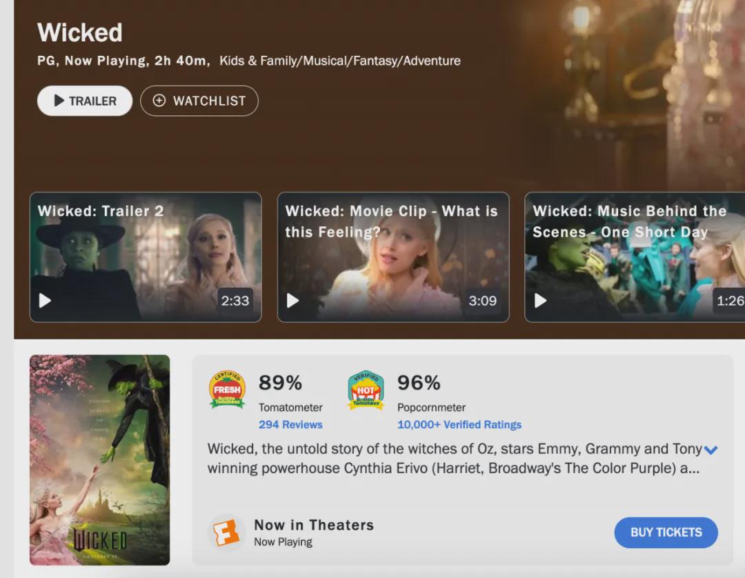 一方面,可能确实是今年颁奖季整体影片的质量确实相对弱一点,今年大热的基本就那几部了(《阿诺拉》《秘密会议》《艾米莉亚·佩雷斯》《粗野派》),包括这部《魔法坏女巫》。