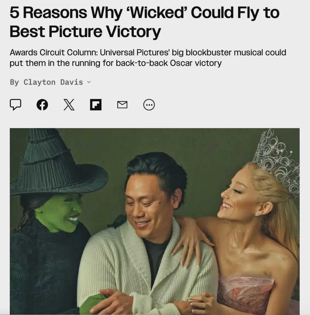 而《综艺》呢,也专门出了个专栏文章,讲《魔法坏女巫》可能拿到奥斯卡的五个原因。