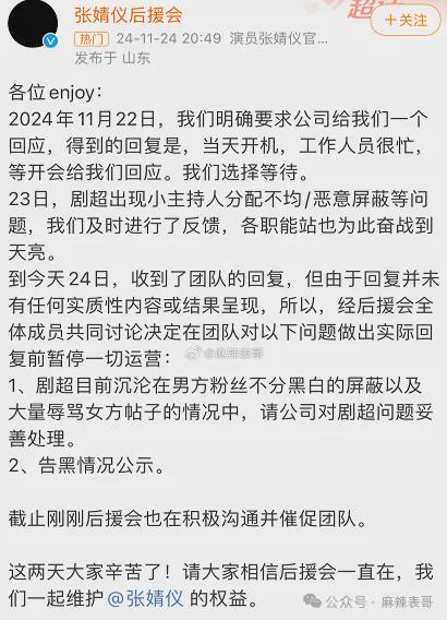 张婧仪粉丝这边闹到后援会,后援会闹到工作室。
