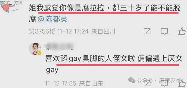 对陈都灵直接开骂,叫她腐拉拉,说她三番捧臭脚。