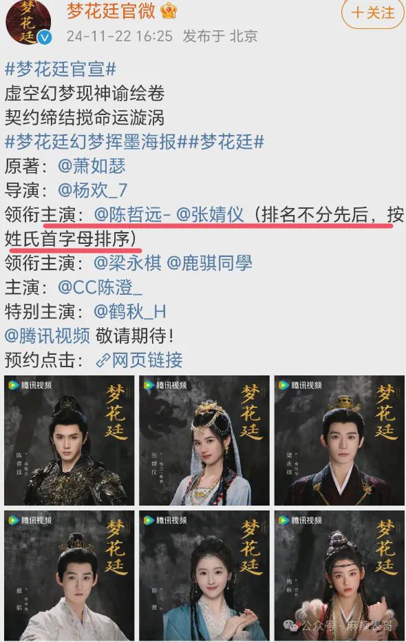官微宣布时,陈哲远在前,张婧仪在后,特地标明排名不分先后,按姓氏首字母排序。