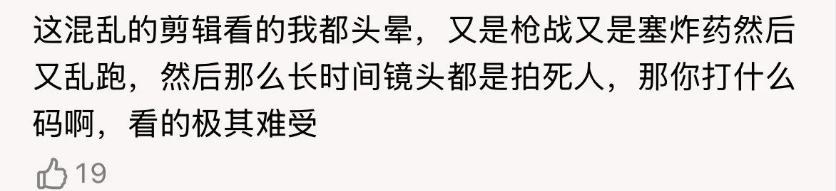 混乱的剪辑,摇晃的镜头看的人头晕,长时间镜头都是拍的死者,然而,拍死者的镜头打了马赛克。