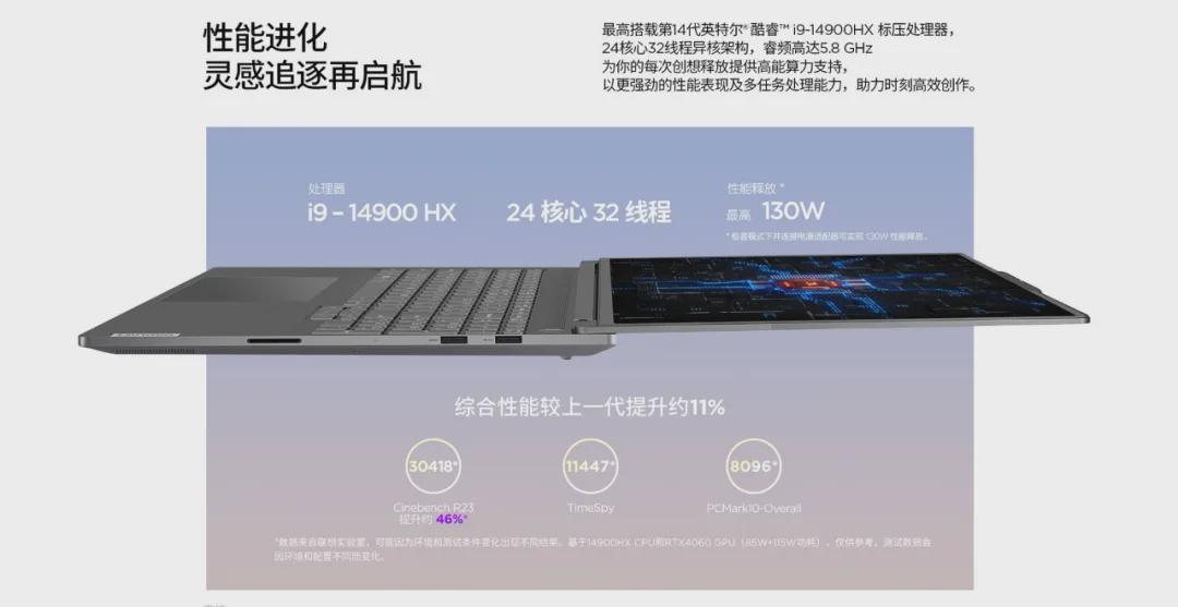 它拥有酷睿i9-14900HX标压处理器 RTX 4060独显的超强性能,整机性能释放高达200W,AI算力高达233 TOPS,稳稳接住创作者的所有需求;
