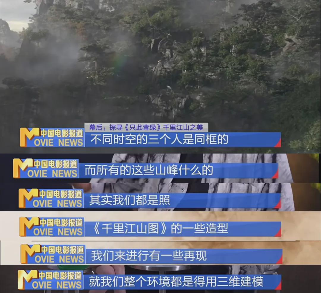 感动的背后,是特效组参照《千里江山图》,用三维建模搭建出相似的巍峨险峰,将三人的联系具像化。