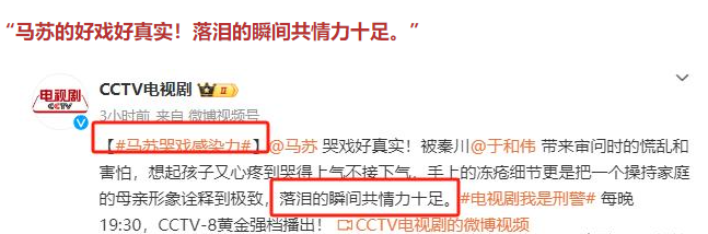 就连眼光独到的央视,在看过这部剧后都忍不住对其进行了一番点评,还专门剪辑了剧中的精彩片段与大家分享,称赞 “马苏的好戏好真实!落泪的瞬间共情力十足”。虽说马苏在剧中并非主演,只是某个案子里的一个小配角,但她却凭借着精湛的演技,将角色刻画得入木三分,尤其是那一段哭戏,让观众仿佛置身其中,感同身受,这便是一个优秀演员的深厚功底和强大实力的体现。