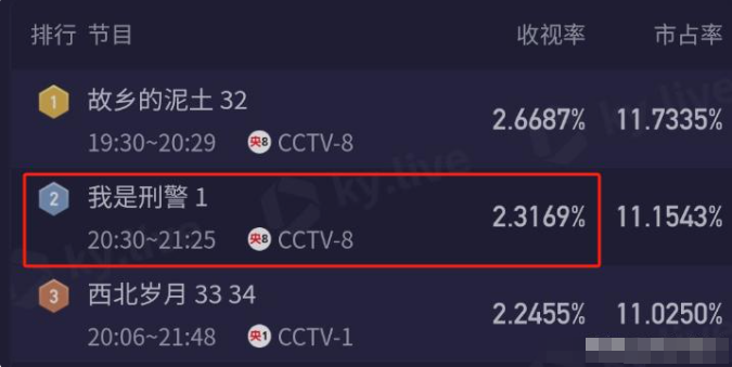 近两年同类型的刑侦剧数量着实不少,多到让观众都渐渐产生了审美疲劳,在这样的大环境下,《我是刑警》一经开播便能掀起如此热度,着实不简单。这其中的缘由,可不单单是因为它在央视开播这一平台优势,更重要的是这部剧有着十足的后劲。仅播出了 3 集,它就如同一匹黑马,热度一路飙升,直接冲上了热度榜的第二名,收视率也是轻轻松松就突破了 2,这般成绩,足以证明它的魅力非凡。