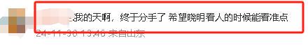 “我的天啊,终于分手了 希望晓明看人的时候能看准点。”