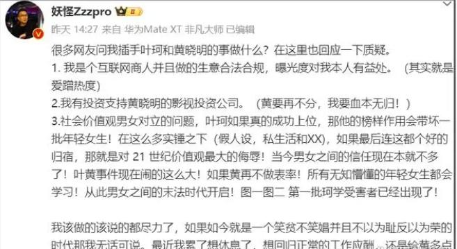 并且叶珂否认了自己给黄晓明1000万这个事情,并表示这个传言不是自己在网上传播的。
