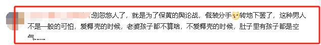 “别忽悠人了,就是为了保黄的舆论战,假装分手,转地下罢了,这种男人不是一般的可怕,爱椰壳的时候,老婆孩子都不算啥,不爱椰壳的时候,肚子里有孩子都是空气……”