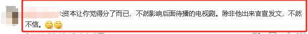 “资本让你觉得分了而已,不然影响后面待播的电视剧。除非他出来官宣发文,不然不信。”