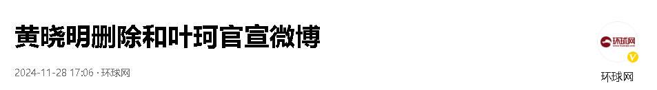 信息来源:环球网——黄晓明删除和叶珂官宣微博