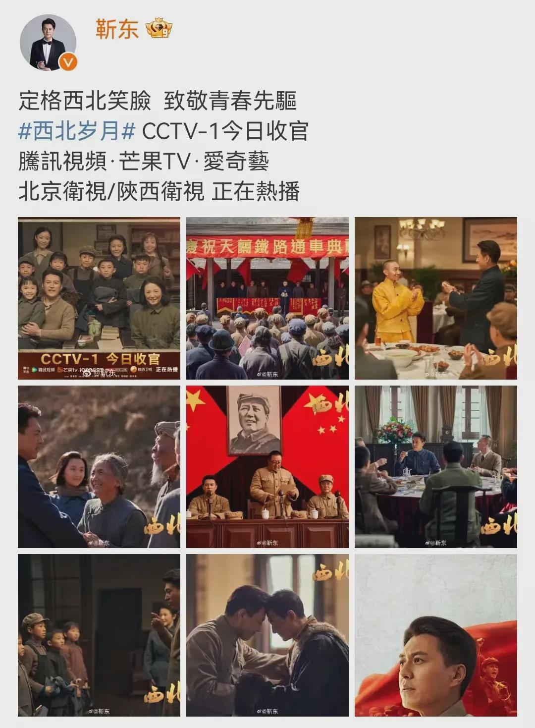 39集电视剧《西北岁月》央视已经收官,靳东发文告别剧集和角色:定格西北笑脸,致敬青春先驱。