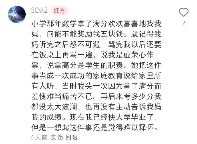 评论区一个高赞回答问:“你们是不是在孩子小时候对他比较严厉,经常打骂?”