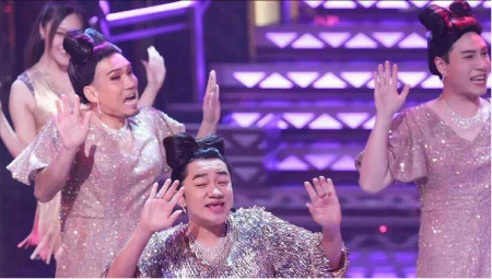 又是《亚洲超星团》的LOONG 9男团的9个年轻年轻小伙在台上尬舞,看得出来很努力,只是跳出来的效果像是幼儿园表演。