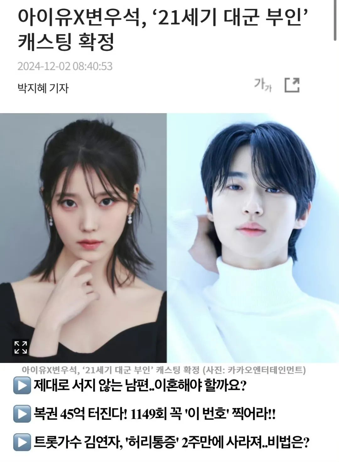 今日,Kakao娱乐宣布,IU边佑锡确定出演MBC新剧《21世纪大君夫人》。