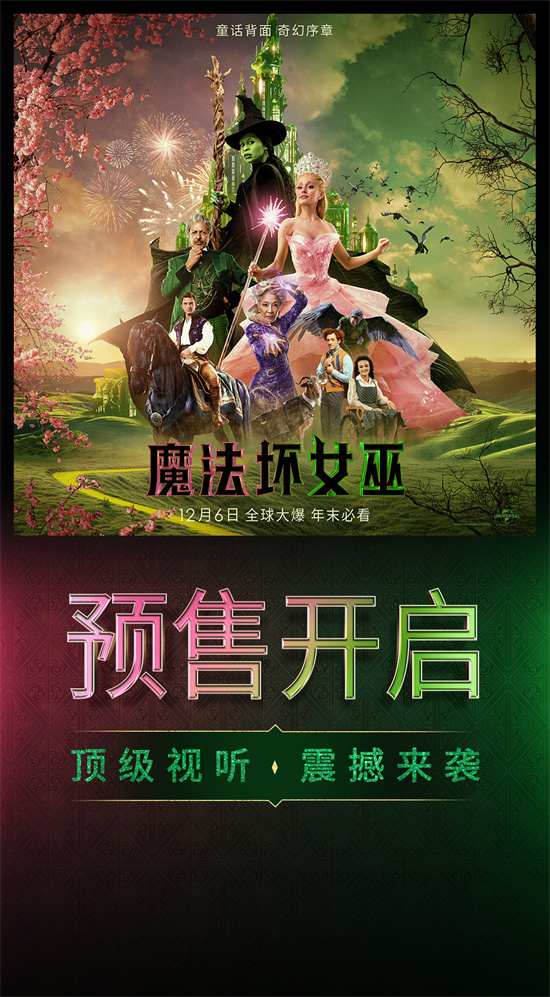 近日,奇幻冒险歌舞电影《魔法坏女巫》开启预售!影片同时释出全新预告及海报,接受奥兹国大巫师召唤,艾芙芭携手格琳达共登特快列车前往翡翠城,神圣都市随处充满梦幻奇景,但亦有阴谋秘密隐藏其中,一段命运改变之旅就此奇妙开启。本片由艾美奖和格莱美奖得主辛西娅埃里沃联手格莱美奖得主、A妹阿里安娜格兰德主演,更有第95届奥斯卡金像奖最佳女主角得主杨紫琼倾情加盟。