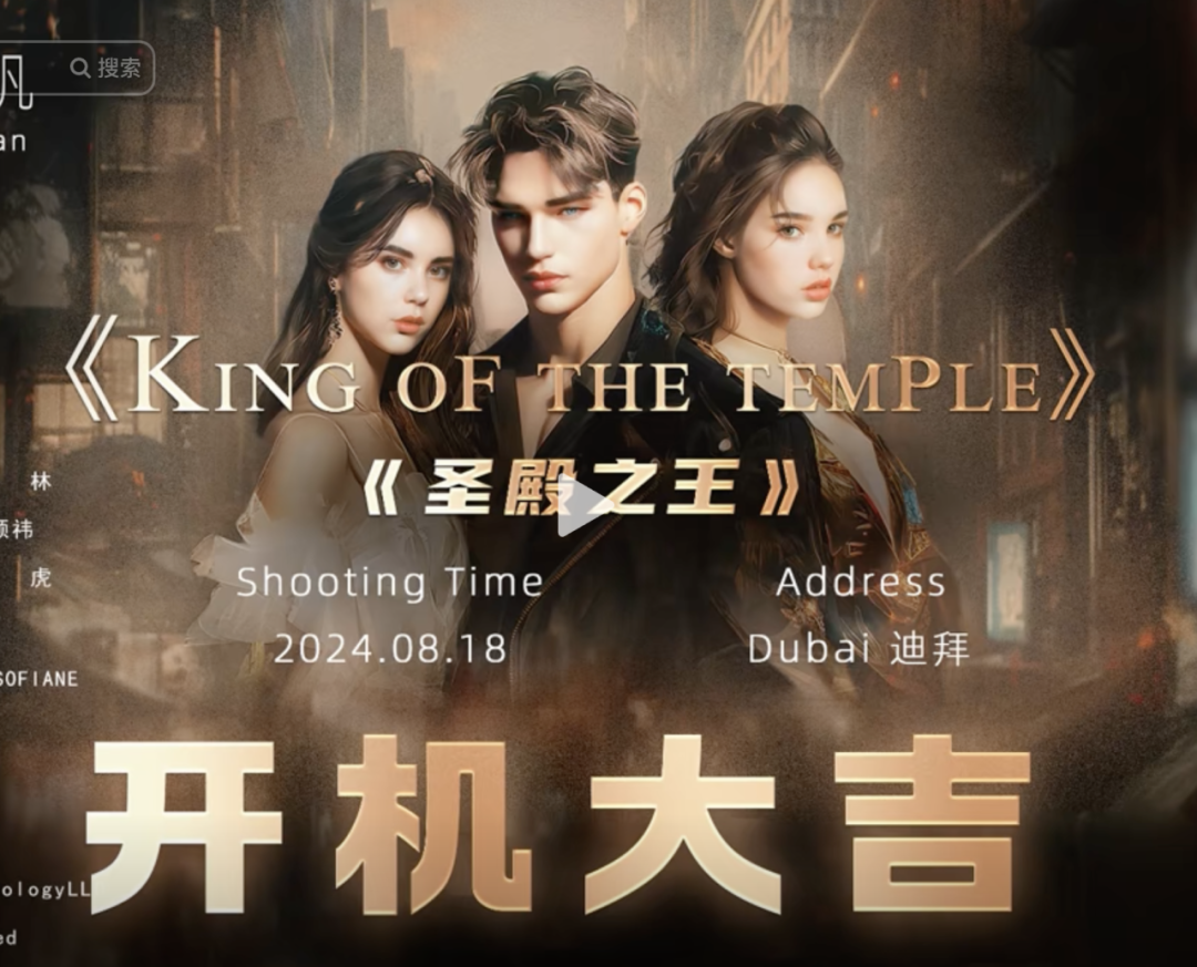 8月,一部名为《圣殿之王》的大型短剧在迪拜正式开拍,该短剧由合肥君盈文化传媒有限公司与中东本土公司绿洲时刻有限公司合作。而除演员为当地人外,从出品人、总制片人、导演等清一色“中国制造”。