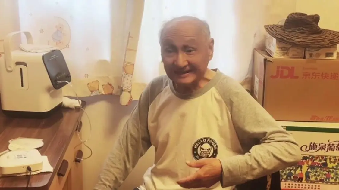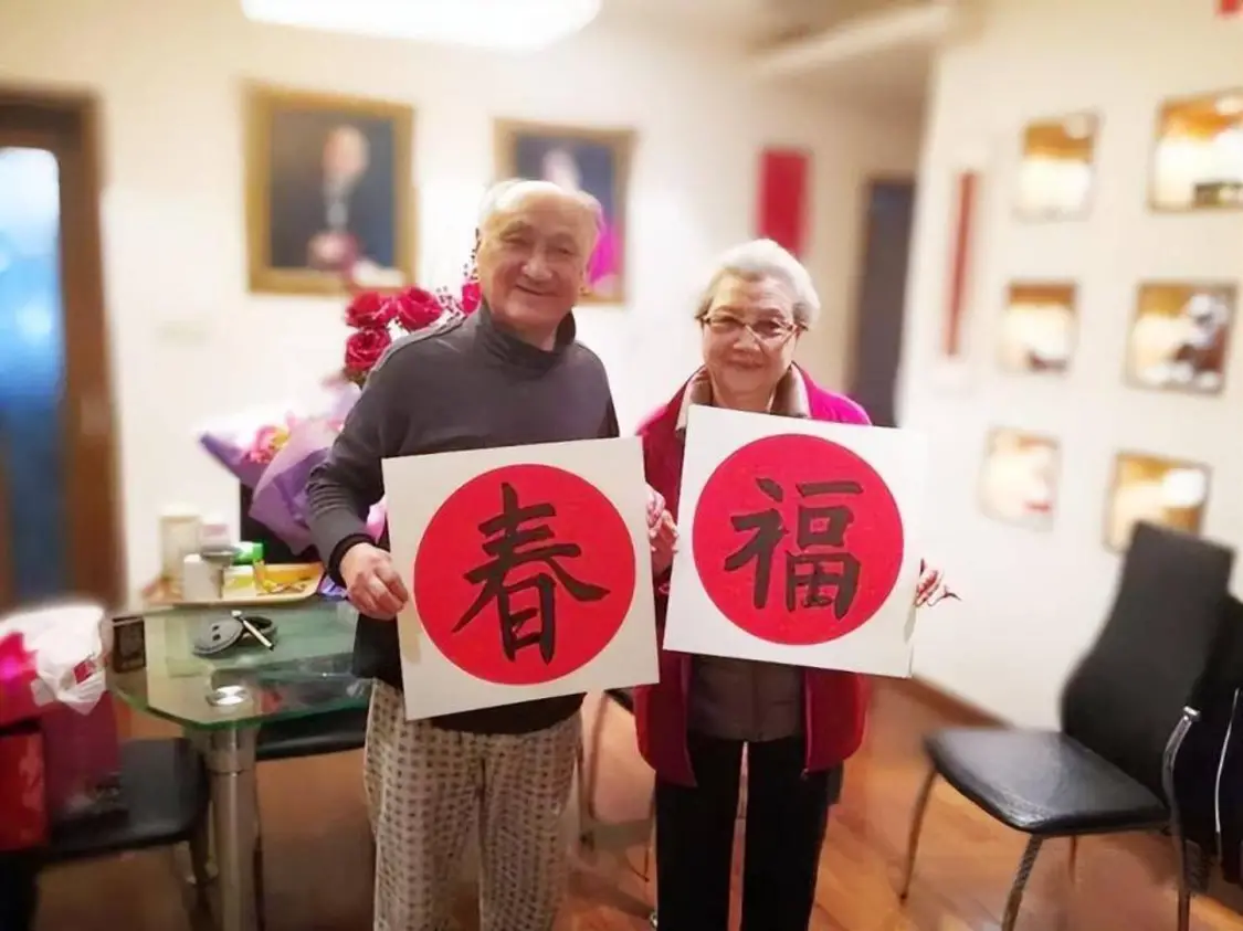 2月11日,童祥苓和妻子一起给网友拜年,两位同岁老人患难与共令人动容。