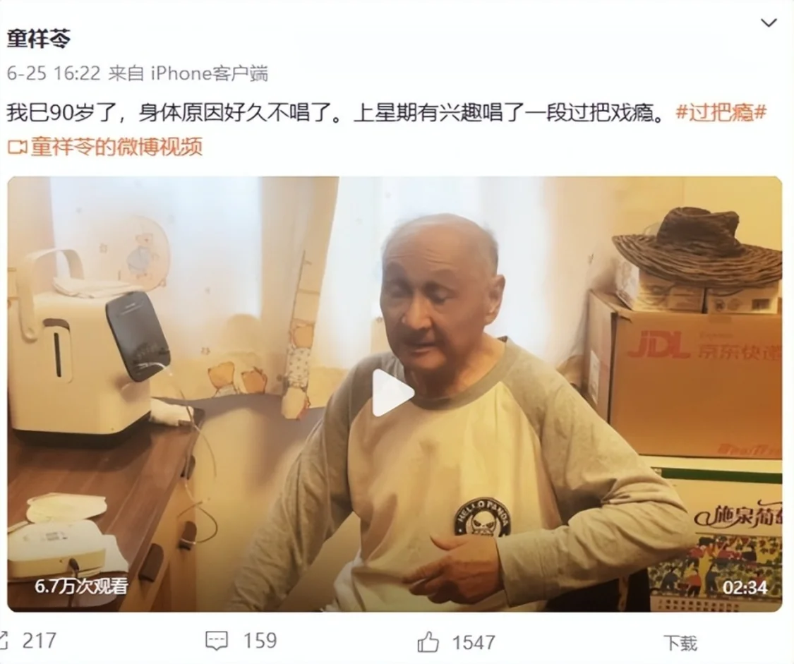 6月25日,童祥苓度过自己农历90岁生日,他精神矍铄,还唱录了一段京剧,也是他最后一次公开露面。