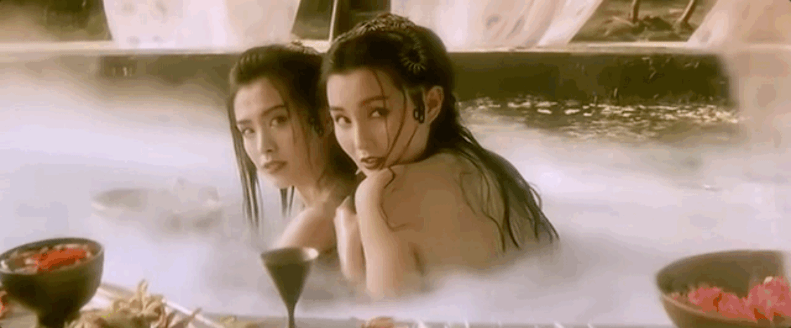 双蛇共浴的片段,青蛇的眼神似乎要将人的魂魄勾了去。