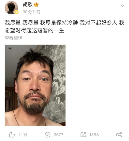 在去年8月的深夜,胡歌emo发微博,露出眼角的伤,与不修边幅的胡须时。