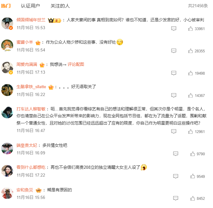 粉丝在底下纷纷怒斥“作为公众人物少掺和这事”、“无语取关”、“多共情女性吧”、“糊是有原因的”……