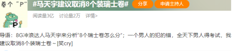 在瑞士卷出来的时候,他发博调侃说取消“8个装瑞士卷”。