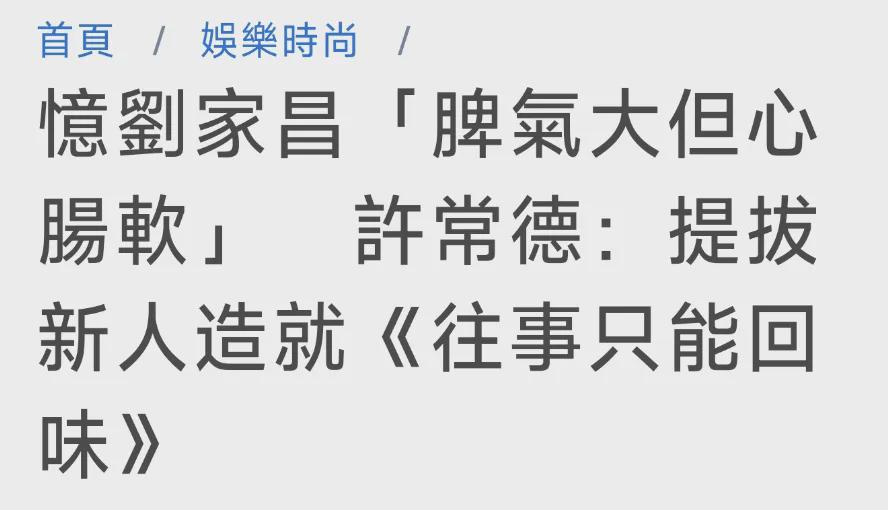 据台媒报道,同样是音乐人的许常德在得知刘家昌去世后一时间很是震惊,随后他又表示,刘家昌虽然生前脾气很大,但是心肠软。