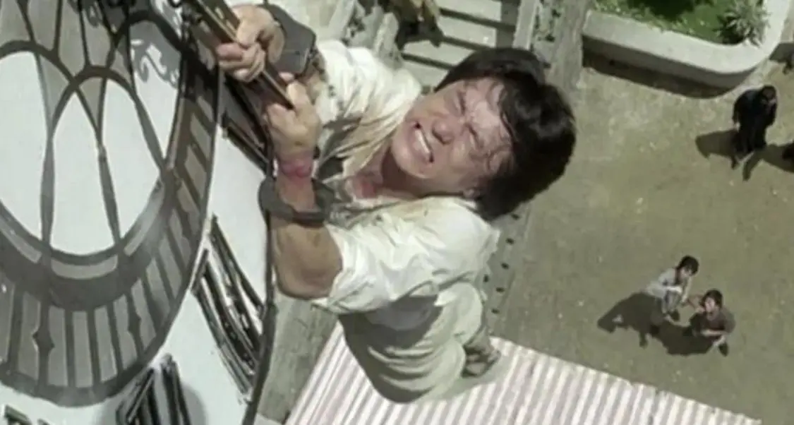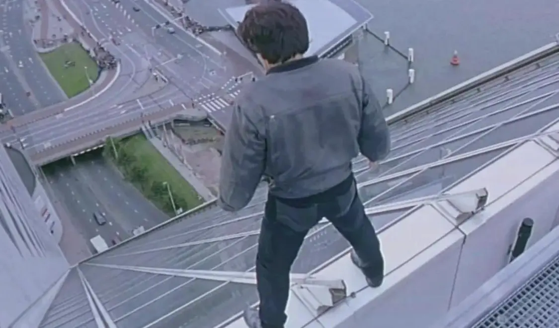 在电影《我是谁》中,成龙从鹿特丹大楼一跃而下——这个镜头被吉尼斯世界纪录评为“电影史最危险的特技镜头”,载入史册。