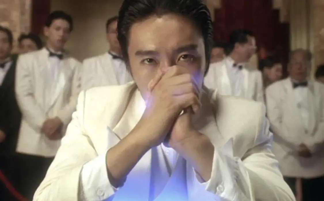西装笔挺,背头梳得一丝不苟,一张扑克在指尖翻飞,他成了荧幕上的“赌坛”神话。