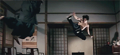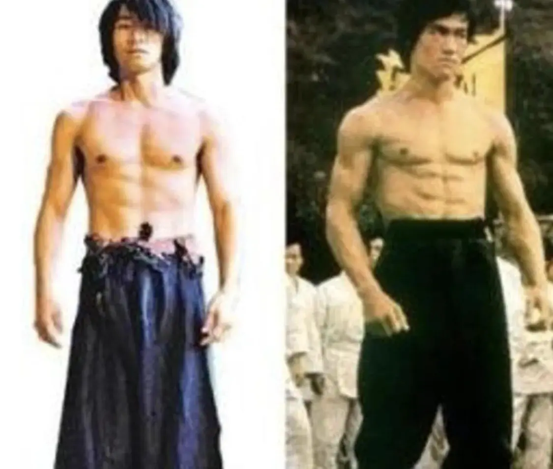 为一个武士角色做替身时,成龙被李小龙一脚踹飞,飞出三米远,门都被撞破。