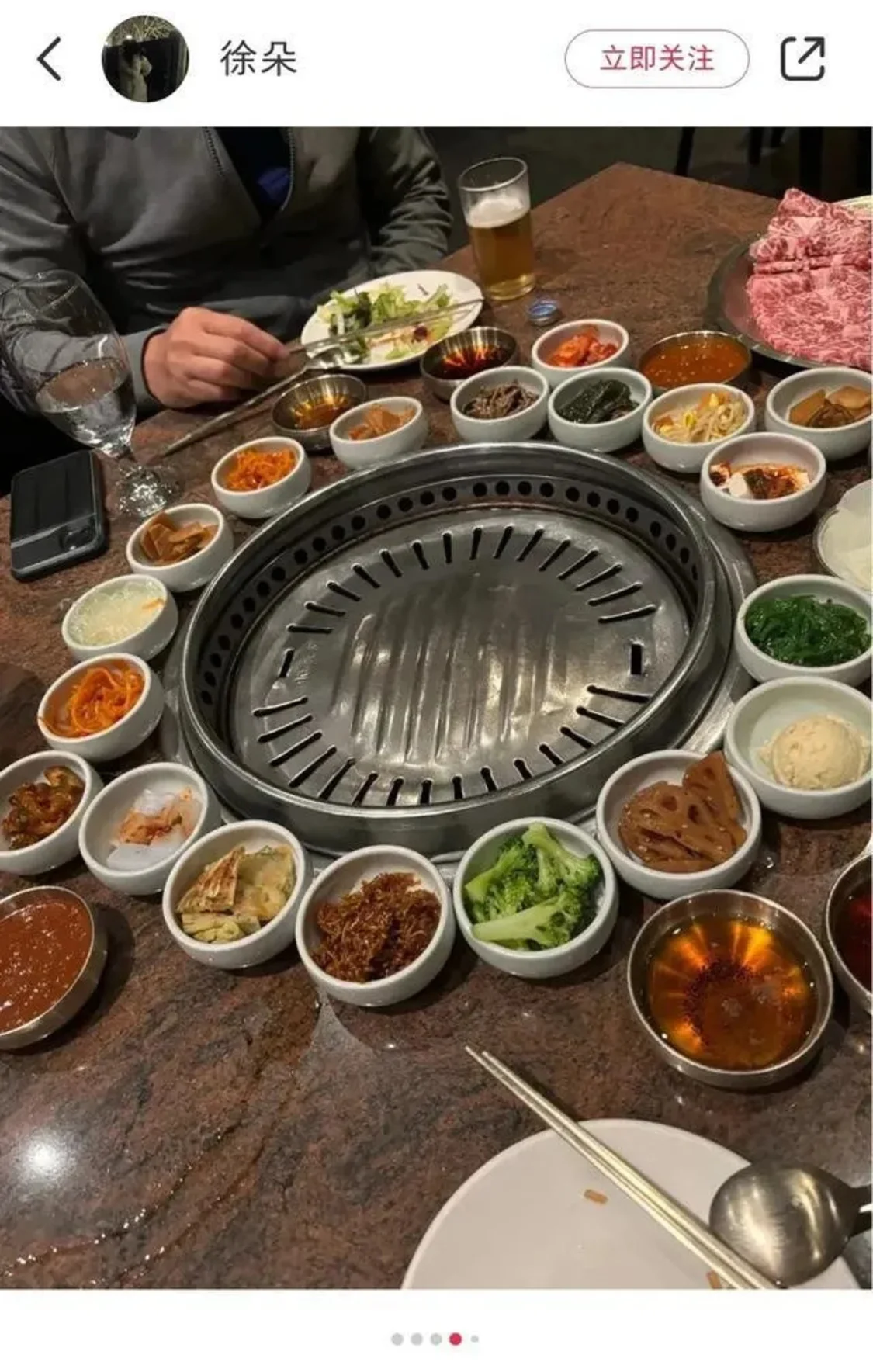 徐朵还在社交平台晒出,吃韩国料理,很丰盛。