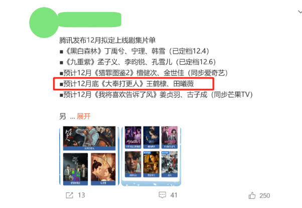 毫无疑问,以《大奉打更人》原著IP的人气,以及整个剧情的精彩程度,再加上刘奕君王鹤棣、田曦薇等主演们的热度,若真的能在跨年档提前开播,那整部剧在上线的第一时间或就将掀起新的追剧狂潮,成为年末档期里最火爆的古装剧。