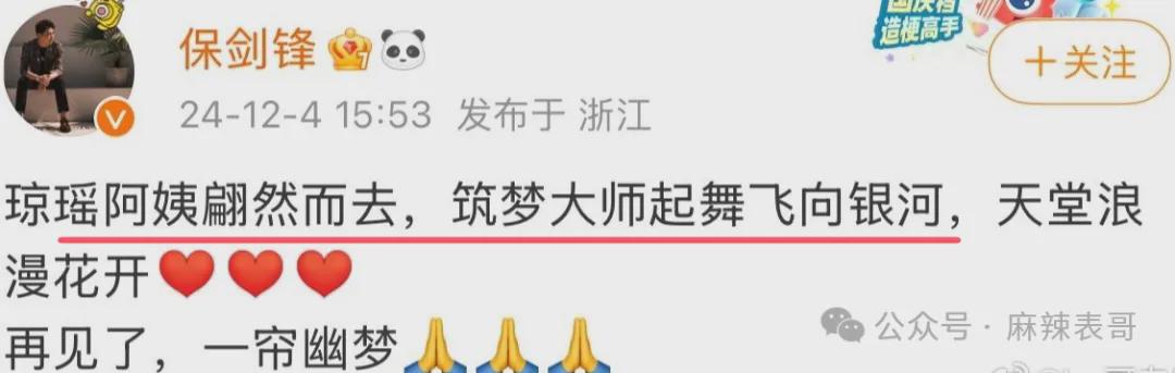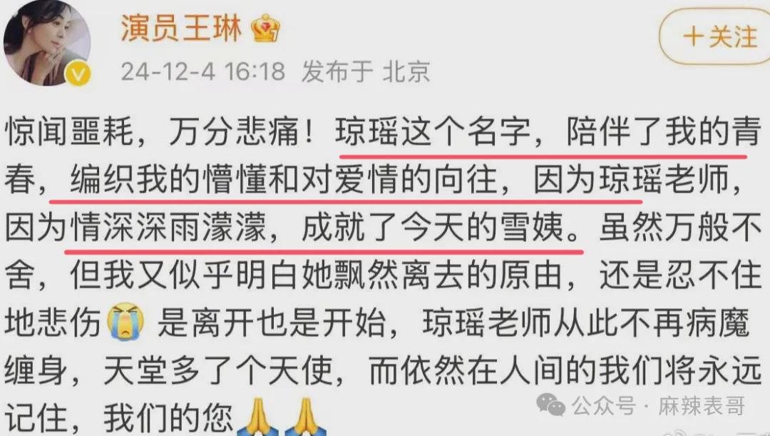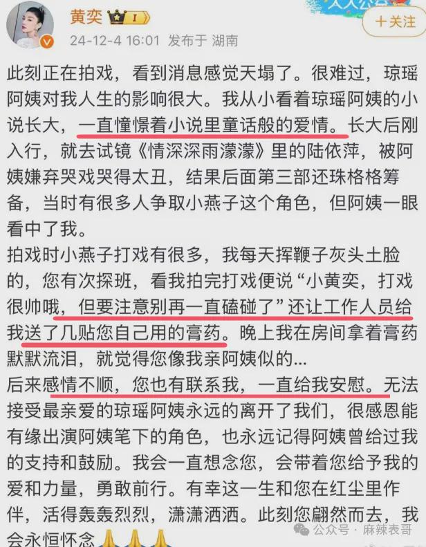 这次琼瑶去世,当初合作过的明星们发文悼念。