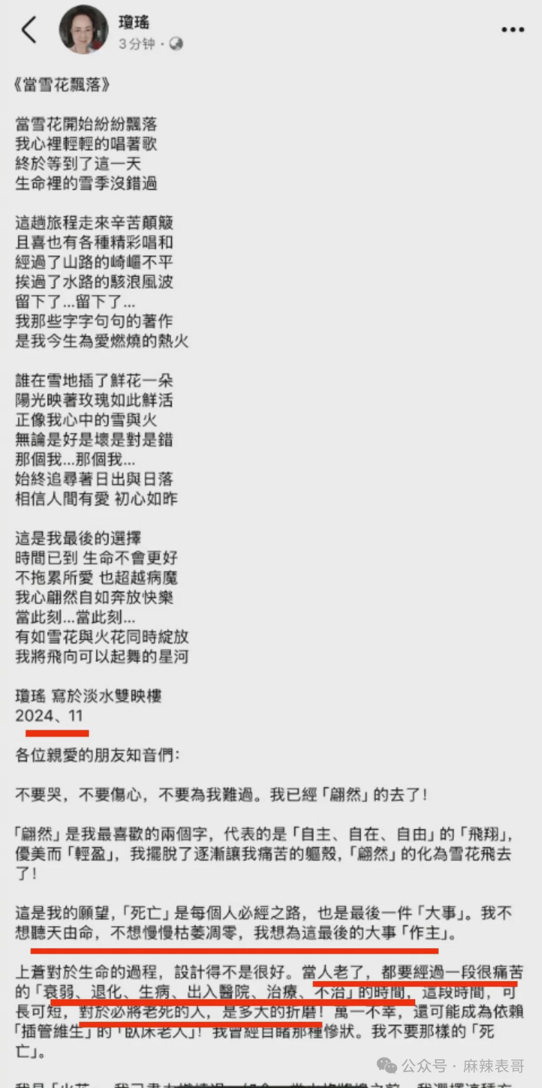 遗书中说:不想听天由命,不想慢慢凋零,想为这最后的大事作主。