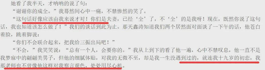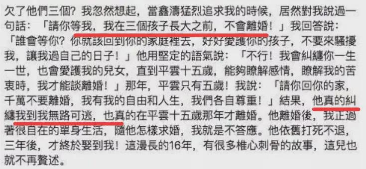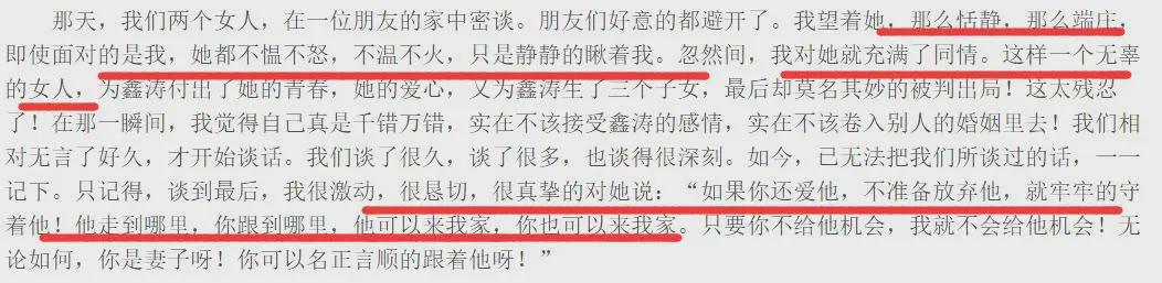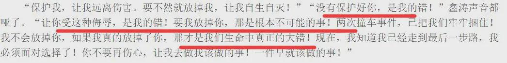 不过在后来的自述里,又把这段感情归罪于是平鑫涛一个人的错。