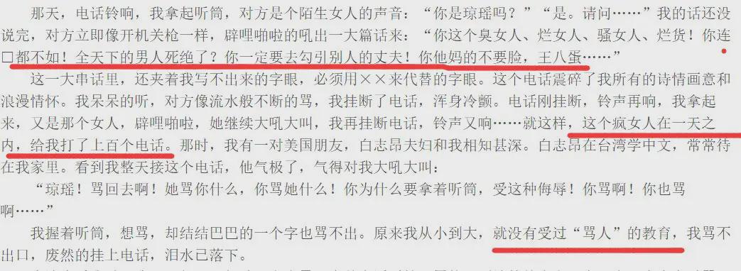 有人打电话骂她做小三,她很委屈,一句嘴都没有还。因为没有受过“骂人”的教育。