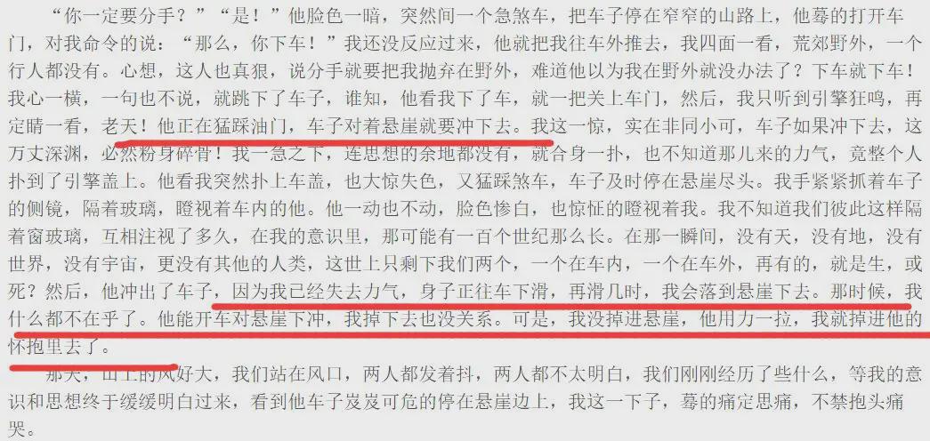 在一起之后,琼瑶觉得自己很痛苦,和平鑫涛提出分手,男方不答应,要为爱冲悬崖。