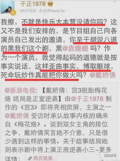 因为这事,后来于正对戴娇倩各种开撕。