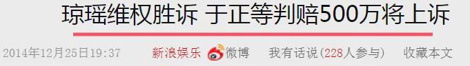 后来于正被琼瑶告,官司输了,赔500万,但一直不道歉。