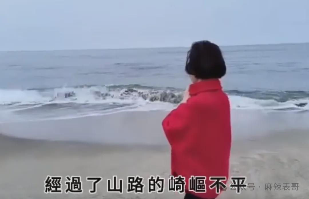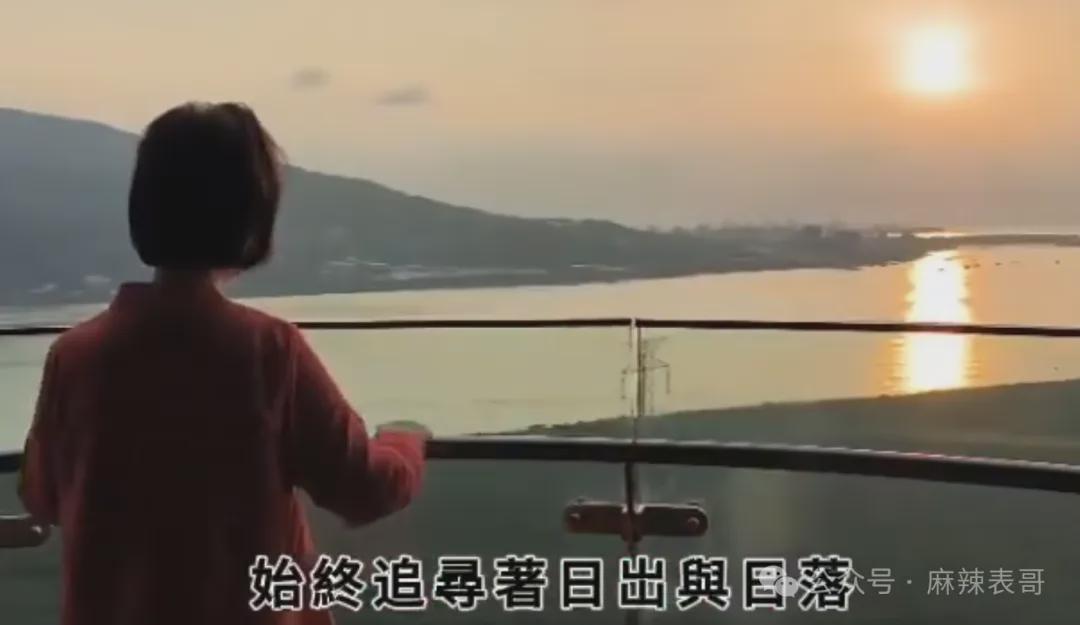 穿着红衣,在海边,看日落,屋内也配上鲜红的玫瑰花,代表着琼瑶对生命的态度。